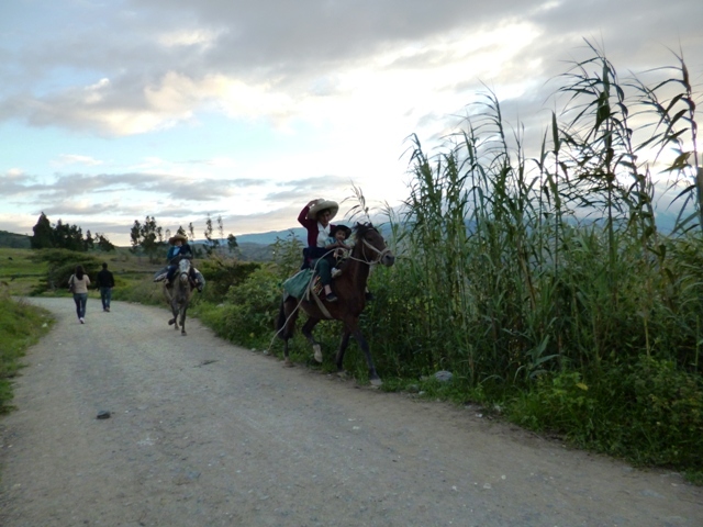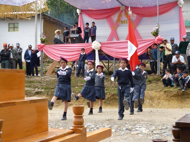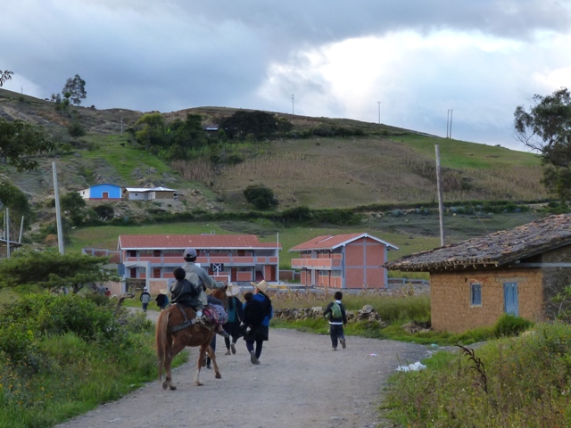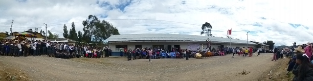 Nos enteramos que en dos días inaugurarían la moderna infraestructura del colegio, por lo que aprovechamos para ir a darle un vistazo, acompañados de muchos pobladores que apuraban sus pasos por la inmejorable pradera, camino de Carhuarundo,