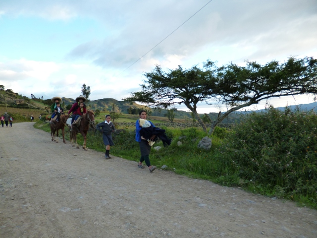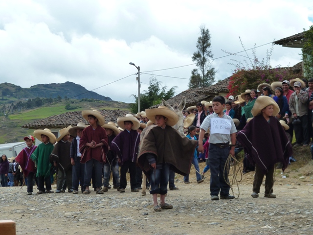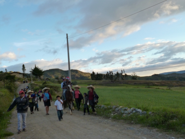 El desplazamiento de alumnos, maestros y ronderos se realiza al son de la banda, con el respectivo saludo venerativo a las imágenes protectoras del lugar y un civismo sobrado.