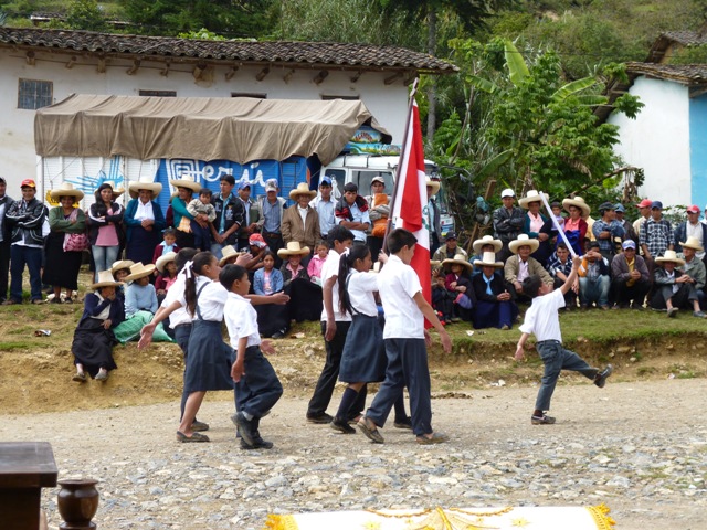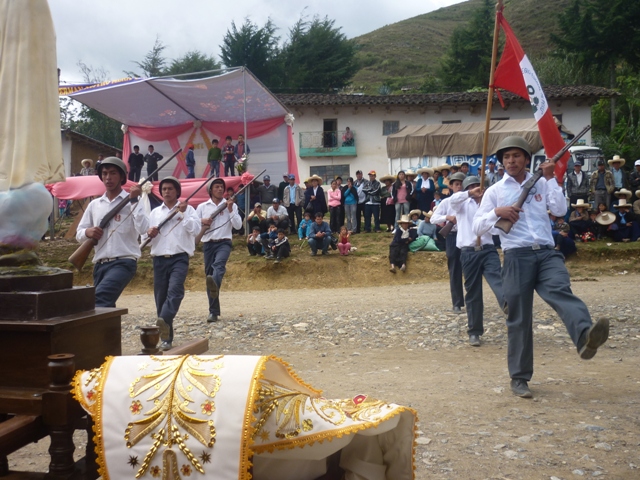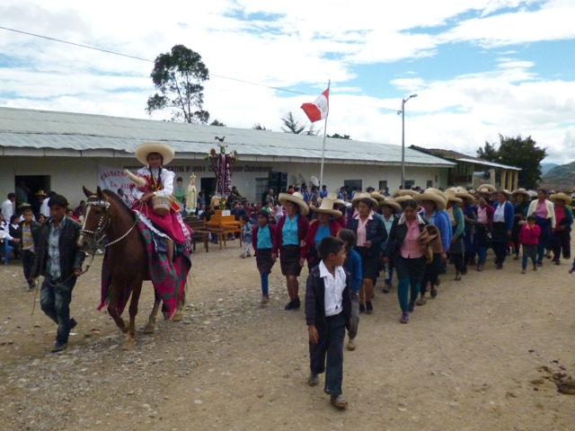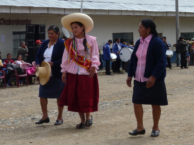 La fiesta en Chabarbamba nos recibe justo cuando se inicia el desfile, advirtiendo una bonita capilla y una pradera exuberante en belleza al igual que sus mujeres y sus representativos textiles.