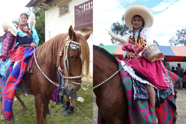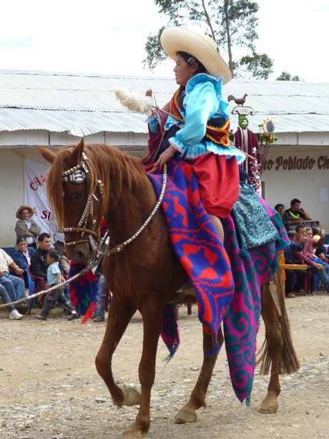 llegando entonces el turno del paso de las candidatas a reina campesina en competencia, con corte respectiva, representando a las diferentes comunidades de Chabarbamba, todas en singulares caballos ataviados con vistosas y hermosas frazadas especialmente laboreadas a callua. Las precede a pie la hermosa reina de 2012.