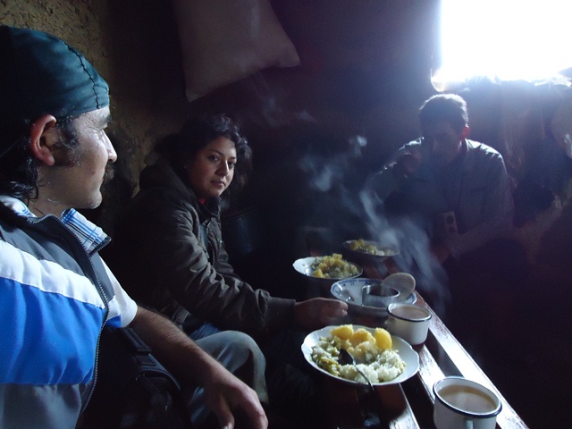 La mamá de Wilder, ya en casa, nos revivió con la más deliciosa papa (chaucha amarilla) arrebosada con caigua y la humeante agüita de lanche. Por último, el mismo Wilder, con la cordialidad reiterada de chiguiripano, y luego de mostrarnos su finísimo ganado, nos guió, justo antes del ocaso, hasta donde se puede observar Sarabamba, dejándonos como en casa.