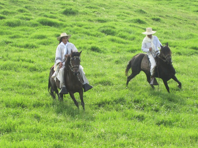 Ya por la tarde llegamos a La Colpa, guiados gentilmente por la actual regidora señora Elizabeth Saucedo, nieta del afamado chalán y criador de caballos de paso Román Saucedo, en cuya casa sus hermanos Betty, Nino y Román nos regalaron una inolvidable tarde donde la yegua favorita, su potranquita y el potro encabritado bailaron insuperables al ritmo de Préstame tu pañuelo, emblemática marinera de Nube Blanca. Champán, el más pequeño de los chalanes, hijo de Elizabeth, coronó la jornada, y Carniche, aún más pequeño, hijo de Betty, ayudó a ensillar a sus tíos cogiendo firmemente a la yegua por la brida.
