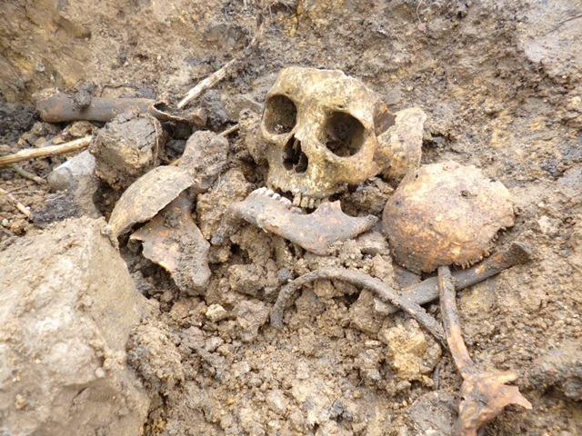En una chacra contigua, atestiguamos el hallazgo de retazos de cerámica y restos humanos, probablemente prehispánicos, encontrados la semana previa, durante una faena de cosecha de papa.