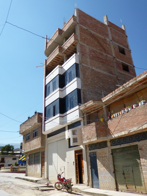 La casa de Atilano tiene tres pisos, que van construyéndose poco a poco; pero a ritmo geométrico, en cada doblar de esquina por nuestra ciudad, nos chocamos cada vez más con enormes moles de cemento que van transformando y acabando la plácida idea de aquella Chota pueblerina, con casitas de techo de teja y a dos aguas y románticos balcones de madera torneados, que van postergándose, tristemente, al baúl de los recuerdos.