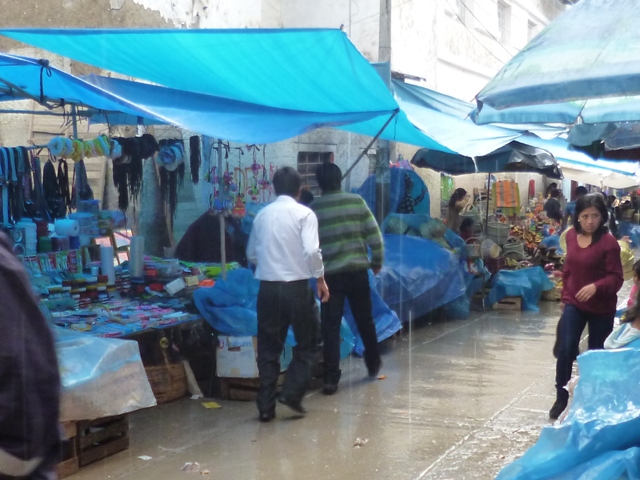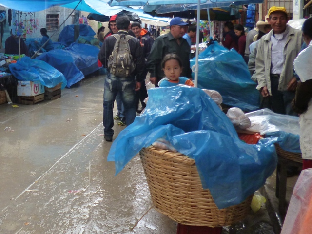 Mientras tomo estas fotos del mercado, en instantes que emergen raudos los plásticos, dos campesinas comentan a mi espalda: "Chota se alocó… con lluvia en este tiempo; pero pa' nosotros y nuestras alverjas ¡qué lindurón!"