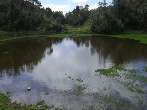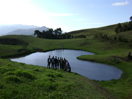 Cuando menos lo esperamos llegamos a la laguna “Negra”, llamada así por el color oscuro de sus aguas y a la laguna del “Amor” por ser un corazón en fibrilantes latidos, para suerte nuestra estas habían quedado “aquishito” nomás, al ladito de la chocita y melga de Don Herminio Guevara, hombre hospitalario de franca sonrisa en los labios.
