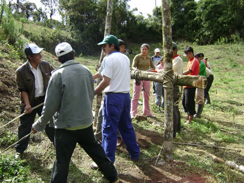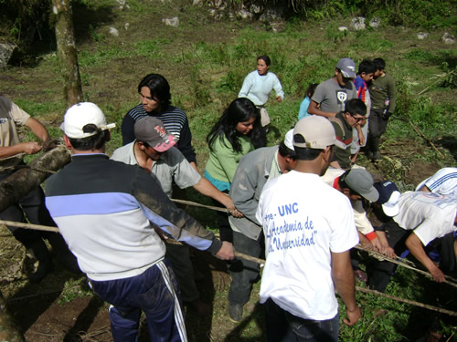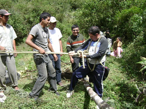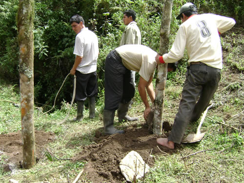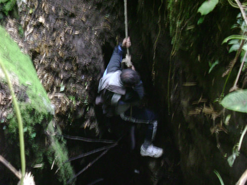 Nos pusimos de acuerdo tácitamente y conjuntamente iniciamos el rescate. Los comuneros cortaron dos árboles, uno fue colocado de canto a canto entre las fauces del foso y se lo aseguró con estacas; el otro fue cortado en tres para afirmar en el suelo el armazón de la polea que nunca cumplió su función y luego se alistaron las sogas. Todo estaba listo, pero ahora el dilema, ¿quién baja? Se hizo el silencio, nos miramos sin decir nada y empezaron en nuestras cabezas sesudas deliberaciones morales.