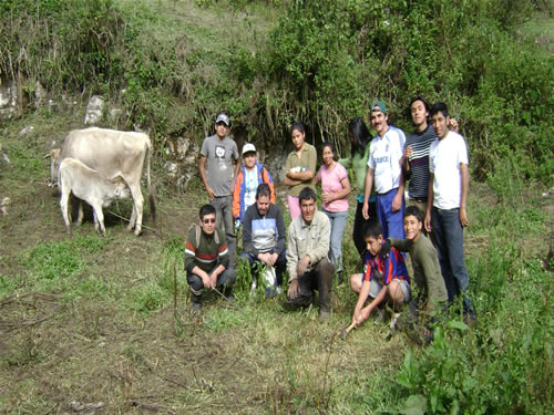 Los “Montaña” no podían ser indiferentes ante este singular acontecimiento, además había que solidarse con la mamá vaca que mugía y mugía, entonces pospusimos nuestro recorrido y nos quedamos esperando. Al poco tiempo estaban llegando como cinco comuneros portando sogas alrededor del cuello y  tras ellos preocupadas  sus chinas.