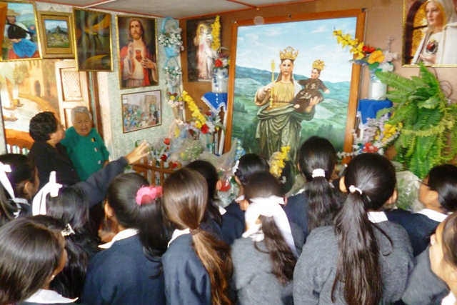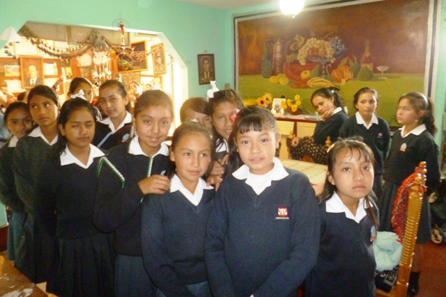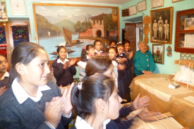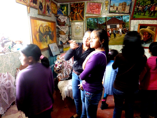Niñas del 61 disfrutando de la obra de Víctor Vásquez y aplaudiendo, especialmente, las obras de artesanía de doña Elena, madre del artista… Lo que se hereda no se hurta.