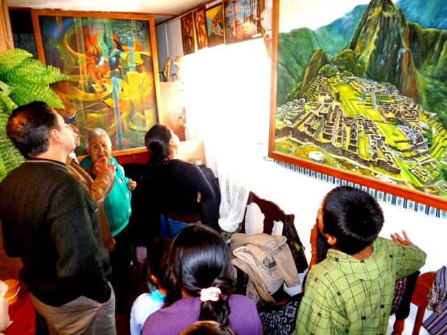 Enseguida de la crítica, realizamos la Visita Artística planeada a la casa de Víctor Vásquez Clavo (esquina Todos los Santos – Soto Burga), donde fuimos atendidos con suma amabilidad por los padres del artista, los señores Ángel Vásquez y Elena Clavo, siendo los rostros agradecidos de los seis niños la representación de nuestro mejor pago;