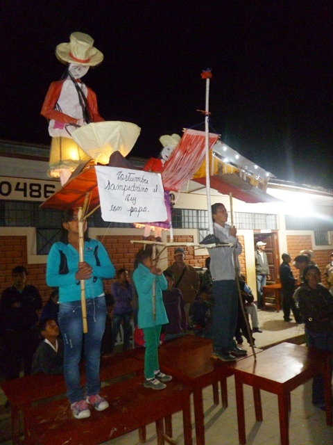 Evento éste donde resaltaron indudablemente dos ejemplares sensacionales: una luminaria con la figura de una campesina chotana friendo cuyes y una segunda con otra campesina akunta tejiendo a callua, ambas con increíbles artificios de movimiento, que ya quisiéramos transmitir a través de estas imágenes.