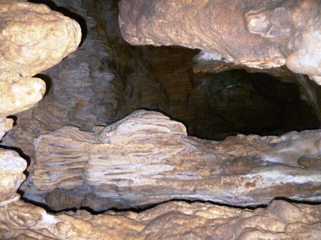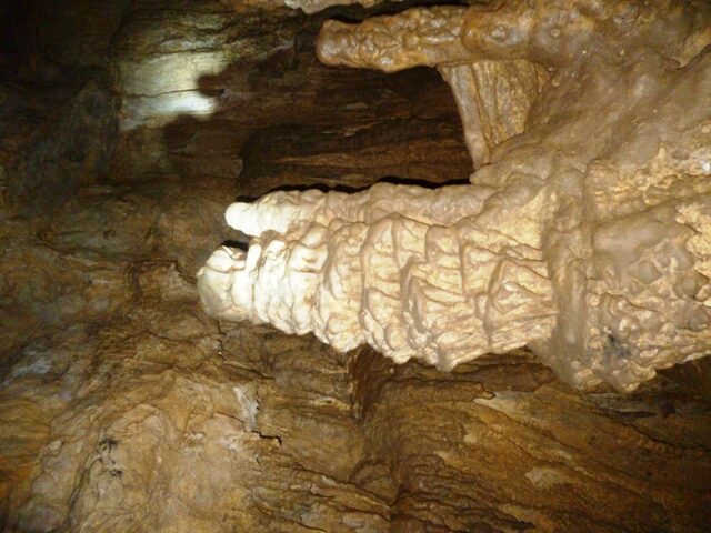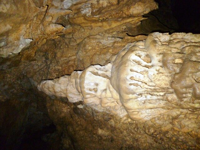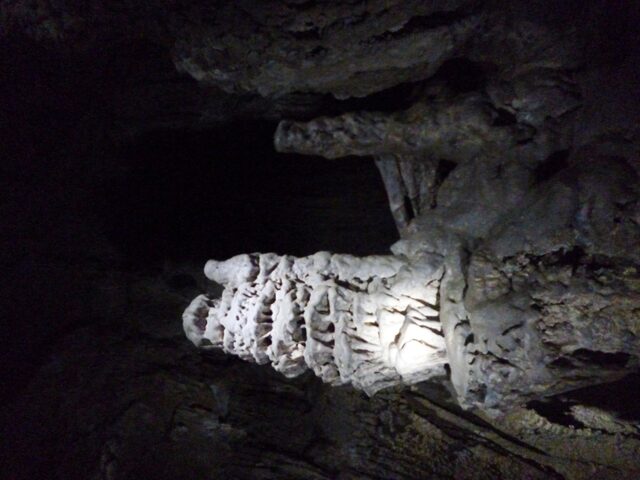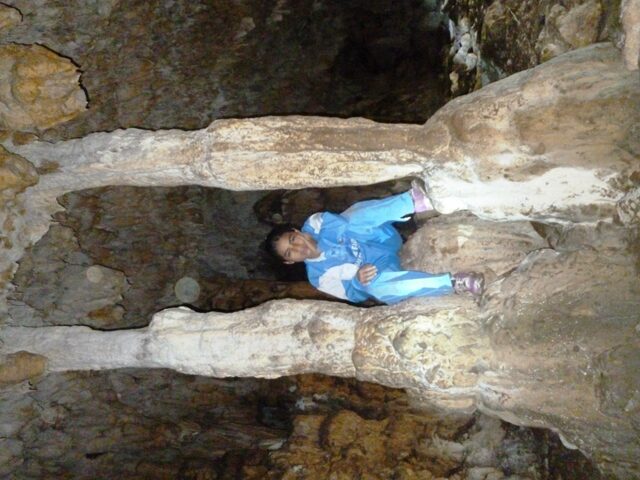 En los ventrículos de la gruta se halla la estalagmita conocida como La Virgencita y el Niño, y hasta ella llegamos para registrarla y admirarla con la reverencia que nos lega la geológica historia del inmemorial escultor Cronos, el tiempo.