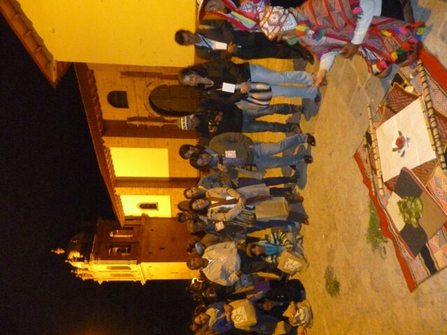 8:40 pm: Pasacalle por el centro de la ciudad de Cusco y en dirección a la plaza de San Cristóbal, donde se realizó una ceremonia de Pago a la Tierra.