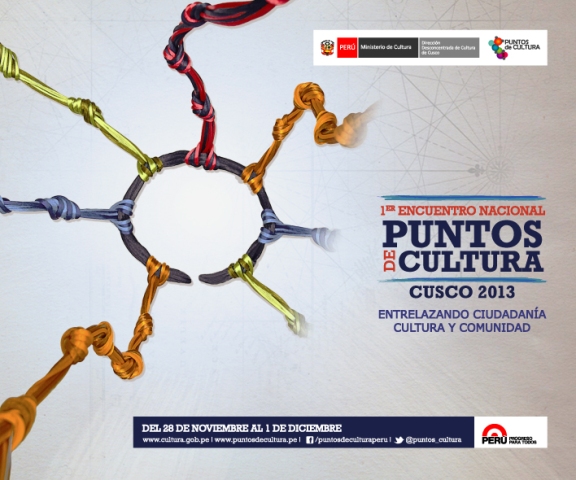 Entre la tarde del jueves 28 de noviembre hasta las primeras horas del lunes 2 de diciembre de 2013, la ciudad del Cusco se convirtió en sede del Primer Encuentro Nacional de Puntos de Cultura, teniendo como objetivo el intercambio de experiencias y fortalecimiento de las organizaciones culturales con incidencia comunitaria, articuladas en red; así como la revisión, discusión y validación de la propuesta de Ley que institucionalice el Programa Puntos de Cultura.