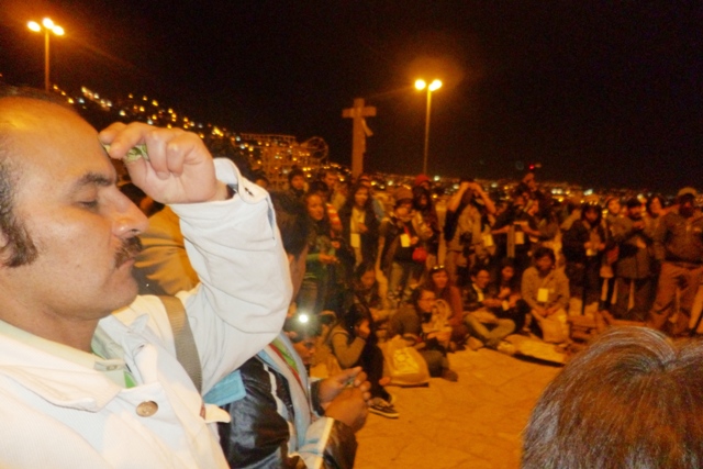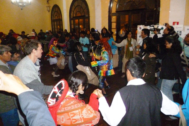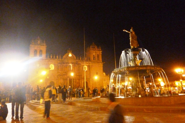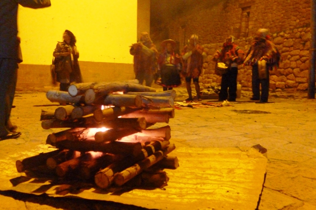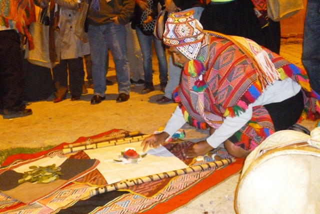 8:40 pm: Pasacalle por el centro de la ciudad de Cusco y en dirección a la plaza de San Cristóbal, donde se realizó una ceremonia de Pago a la Tierra.