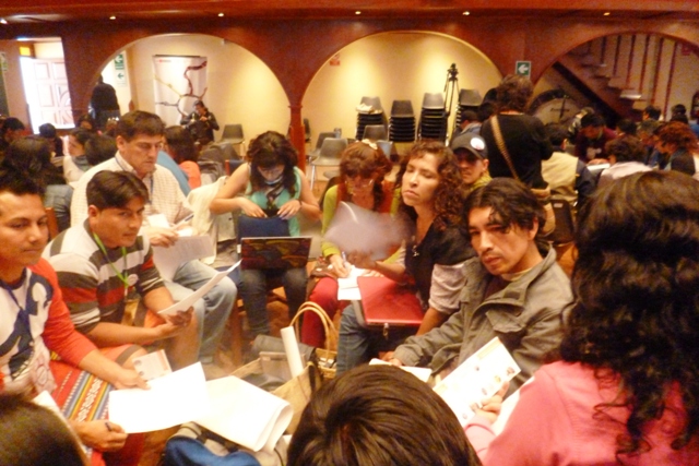 “Incidencia pública de organizaciones culturales comunitarias” con la presencia de Fresia Camacho (Costa Rica), Marcos Monte (Brasil), Orlando Cajamarca (Colombia) y Luis Nieto (Perú), siendo la segunda mesa de trabajo del Encuentro; posteriormente se debatió sobre “Experiencia de redes y cultura comunitaria” contando con las intervenciones de Adhemar Bianchi (Argentina), Mario Rodríguez (Bolivia), Miguel Andrés González (Costa Rica) y Norka Calderón (Perú).