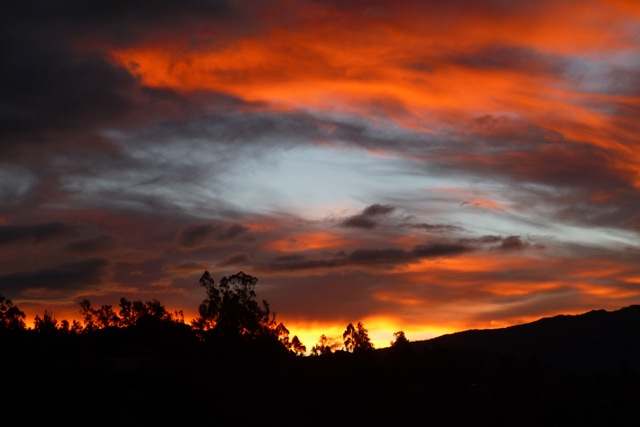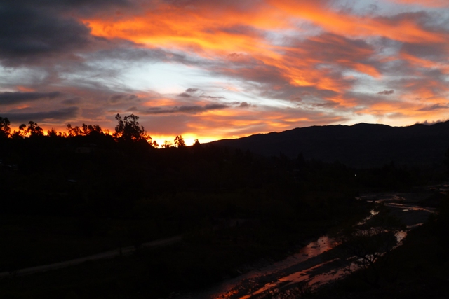 Incendiémonos pues el alma, tanto como el cielo de Chot, que rematando la jornada de los tres días de feria en Tuctuhuasi, y hallándonos desandando el camino ya en Corepuquio, nos deslumbrara con una puesta de sol, tal, que incendió la majestad misma de nuestros propios apus.