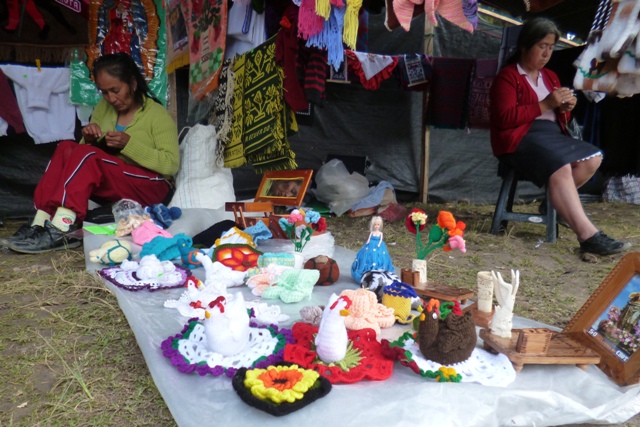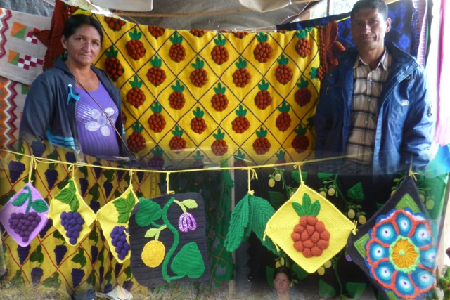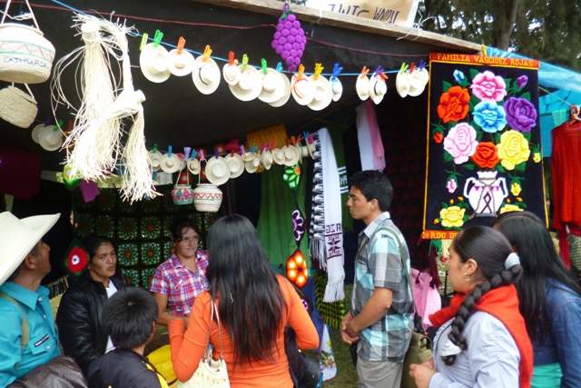 Expertas artesanas apuran sus labores, mientras atentas vendedoras ofertan lo mejor de sus productos agroecológicos.