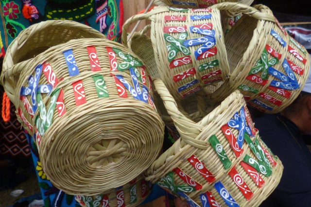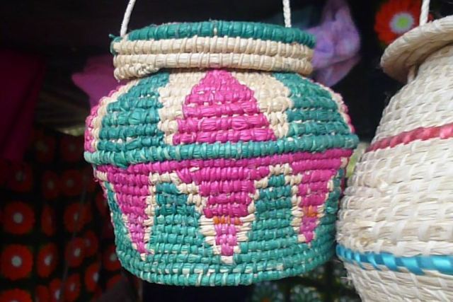 Vivaces canastas de carrizo, miniaturas de callua y recuperadas canastillas de junco; estas últimas que nos remiten especialmente a un pasado añorado, antes de la era del plástico.