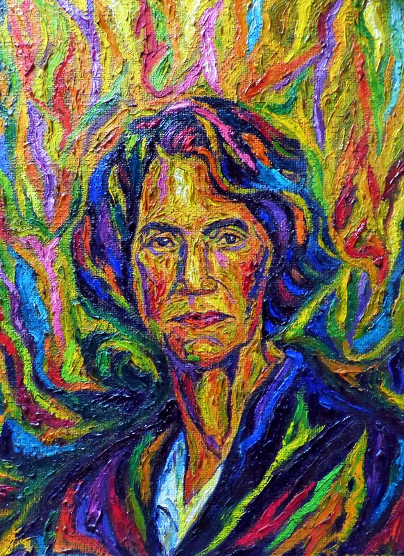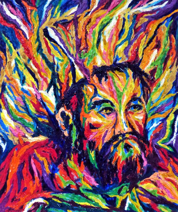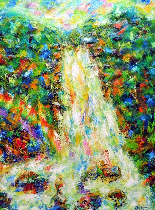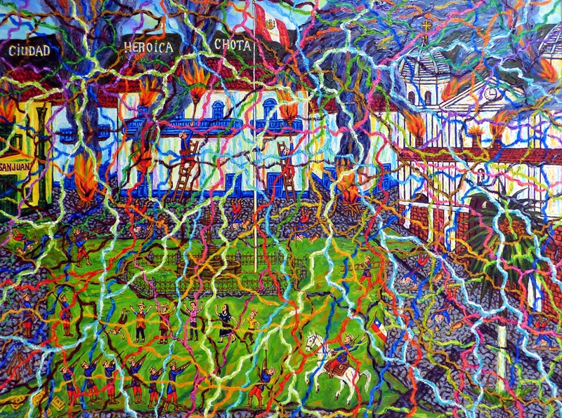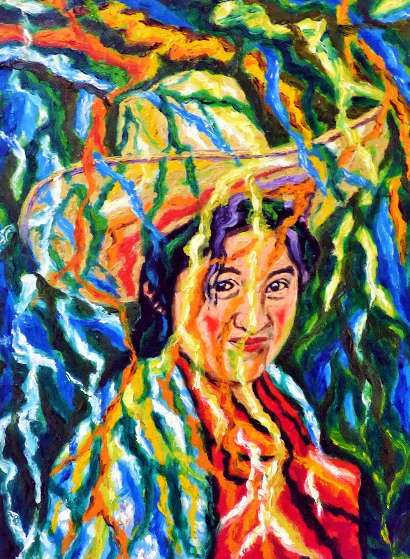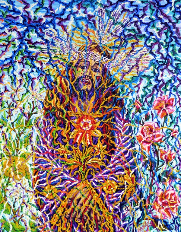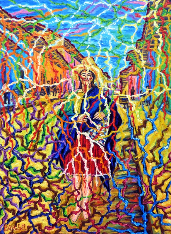 Llama “TRAZOS ENMARAÑADOSâ€? a su estilo propio de pintar, pues es el trato final que realiza sobre sus cuadros a manera de rayos o raÃces retorcidas que destrozan a las figuras con sus pinceladas zigzagueantes, tratadas con infinito amor de vocación, desahogando su pasión por el color, que llega a la exaltación y furia de sus pinceladas caracterÃsticas llenas de movimiento, lo cual hace que su arte no sea estático, sino que derroche involuntaria e inconsciente el óleo que trasmite su alma.