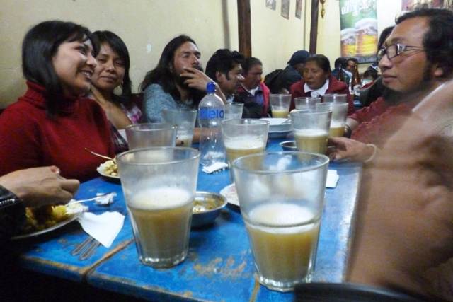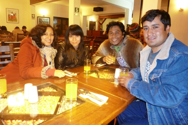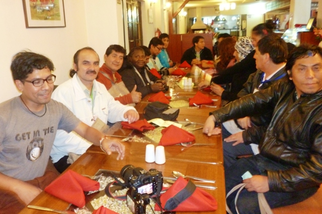 Las diversas locaciones del Hotel Cusco, las de la Casa Garcilaso, el centro de la ciudad, la plaza misma de Cusco, el restaurant «El Maizito», sirvieron de inolvidables ambientes para terminar de conjugar las nuevas amistades que nos ha dejado el I Encuentro Nacional de Puntos de Cultura, realizado en la Imperial Cusco, entre el jueves 28 de noviembre al lunes 2 de diciembre. Algunos extendimos la cita hasta el miércoles 4, complementando esta mágica oportunidad con la visita impostergable a Machu Picchu y la despedida de Cusco con la deliciosa chicha de la Manuela.