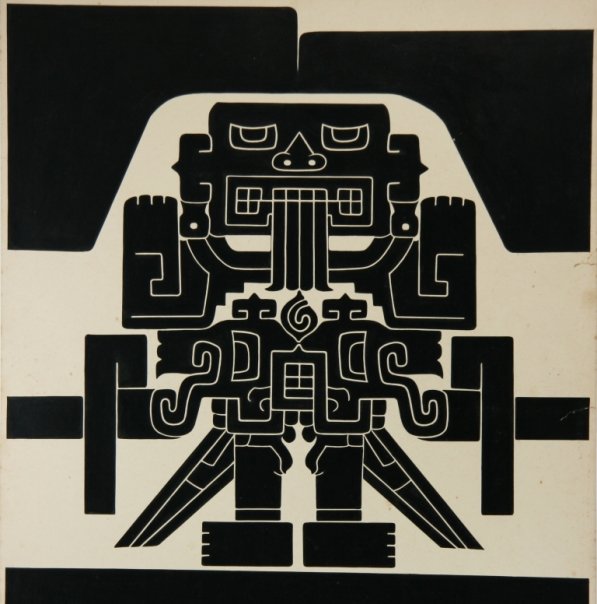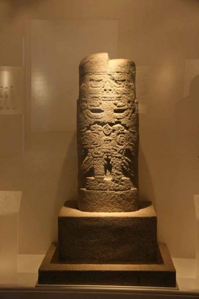 Una estela de piedra descubierta por Rafael Larco Hoyle en 1939 en el sitio de Pacopampa (provincia de Chota) se muestra imponente en las galerías del Museo Larco. Se trata de la escultura de una mujer con rasgos sobrenaturales. Su rostro presenta una boca con gesto agresivo, de la cual sale un flujo. Lleva orejeras circulares en los lóbulos de sus orejas. Junto a sus piernas hay dos prolongaciones en forma de plumas o alas. Su cuerpo ha sido representado por dos caras felínicas de perfil entrelazadas, que vistas de frente también forman un rostro estilizado de felino. La boca felínica con colmillos forma a su vez la vagina dentata de esta mujer. Este rasgo de la vagina dentada aparece en mitos de muchas culturas alrededor del mundo, generalmente referidos a una gran y terrible madre creadora. Entre el rostro humano y el rostro animal, esta la representación de un Strombus, molusco de mares cálidos que está vinculado simbólicamente al ciclo del agua.