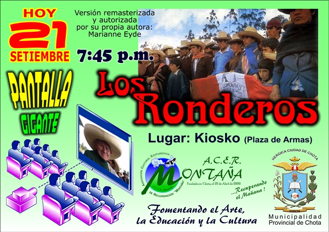 Hay que decir que esta película chotana concitó una de las mayores afluencias de público y en ella podemos ver con orgullo a Juana Montaña (Juana Vásquez Paredes) en la caracterización de una joven, hermosa y luchadora rondera, como lo es ella… ¡Felicitaciones!